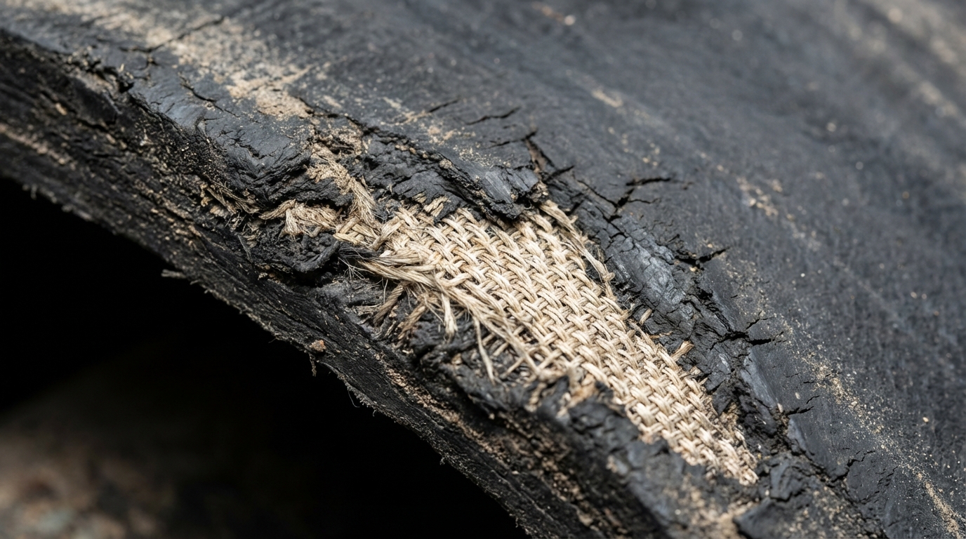 Key Takeaway: Visible fabric at the edges or surface is a critical warning that your 3-ply belt requires immediate replacement or repair.