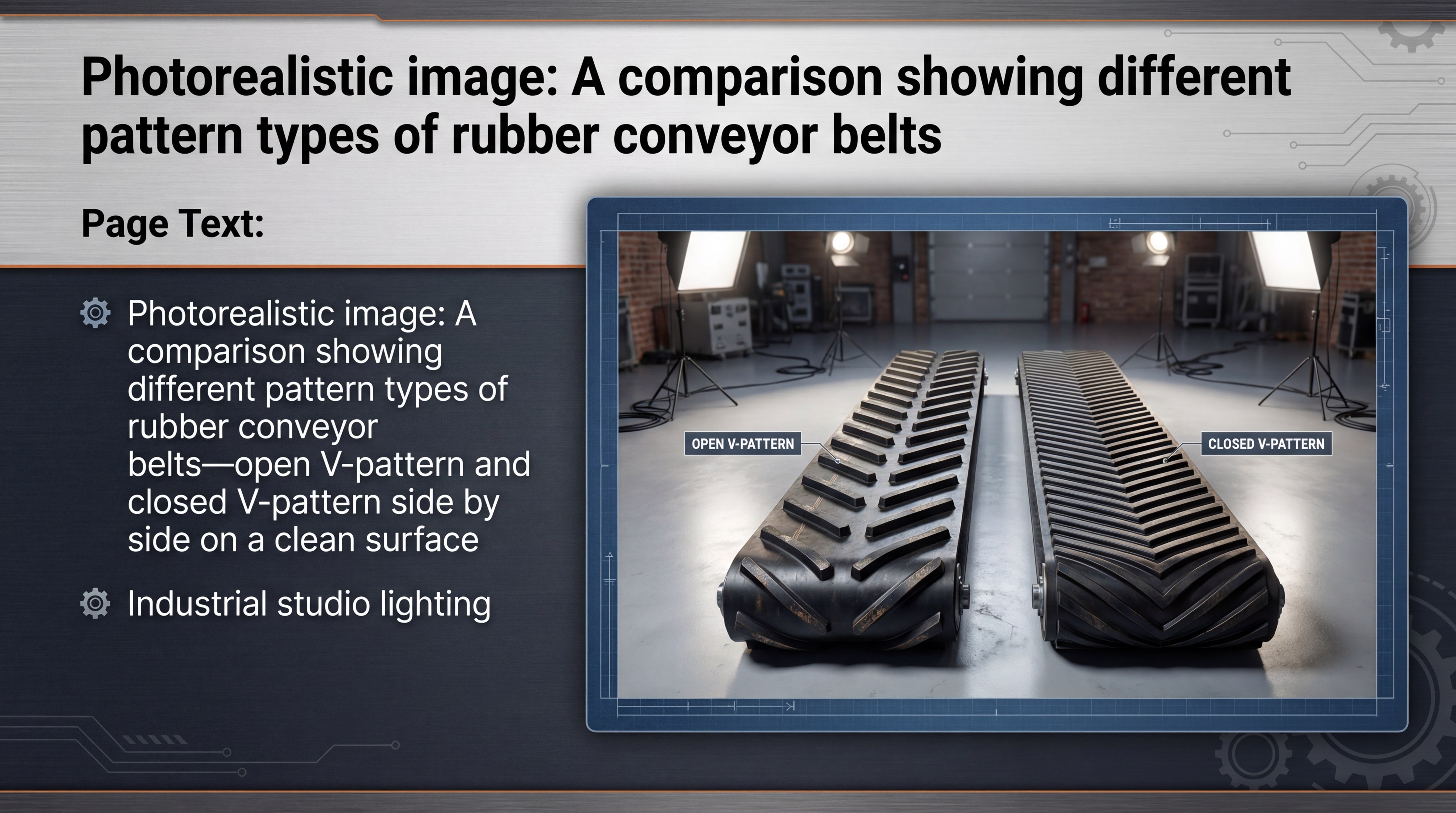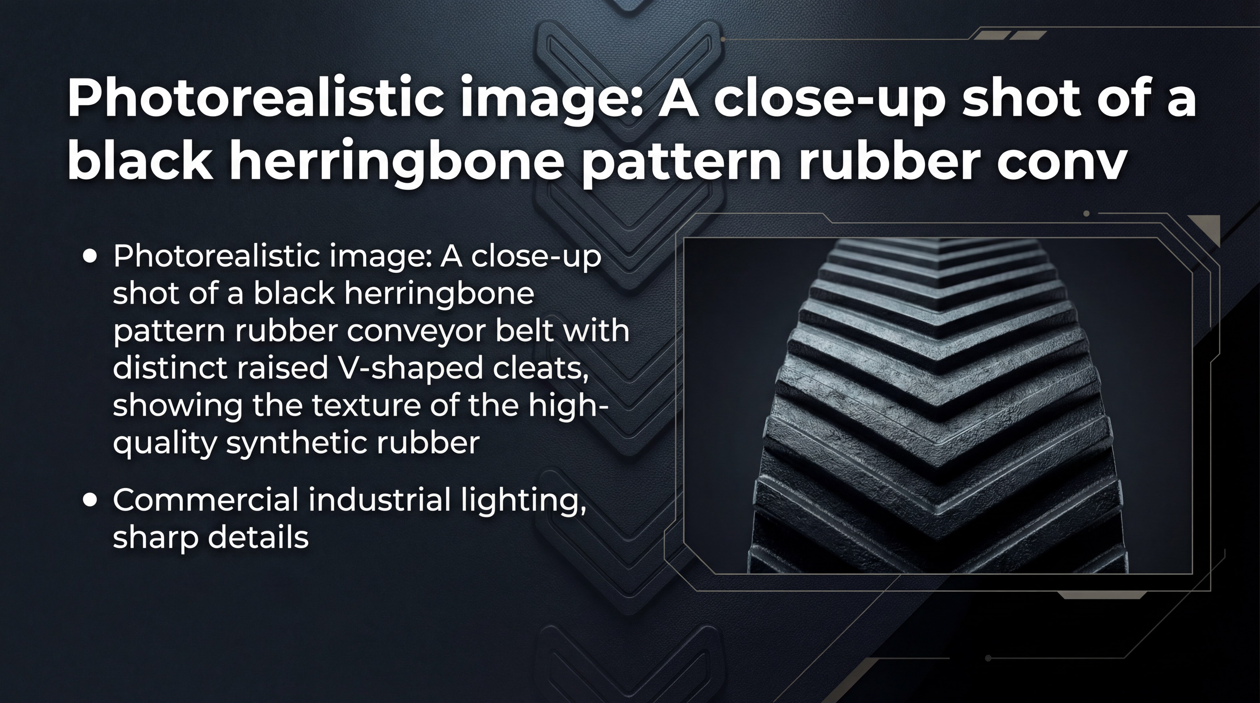 What technical data supports a herringbone pattern rubber conveyor belt?