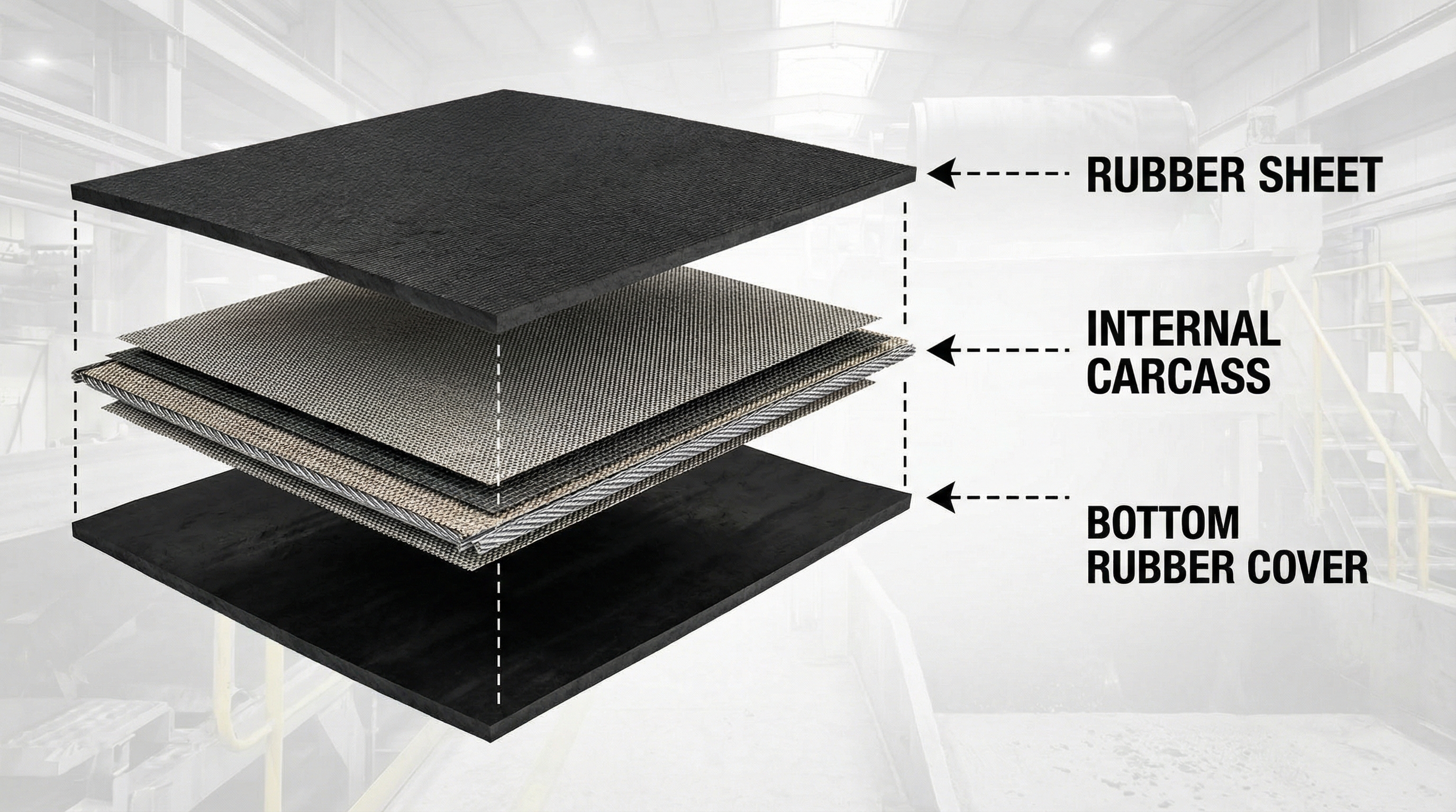 - Top Cover: High-grade rubber for superior abrasion resistance.