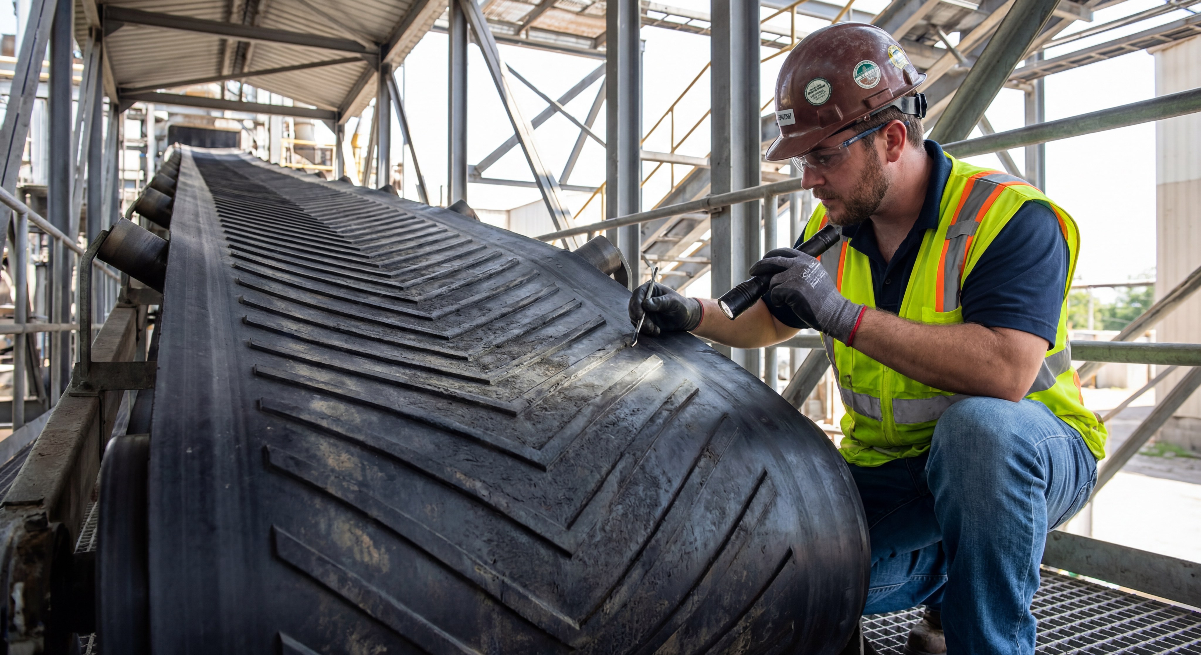 Maintenance for a profiled herringbone rubber conveyor belt focuses on keeping the profiles clean and the tracking centered. Because the cleats are raised, any misalignment can cause the profile to rub against the conveyor frame, leading to rapid wear. Regular inspections of the cleat base are necessary to catch any signs of stress cracking early.