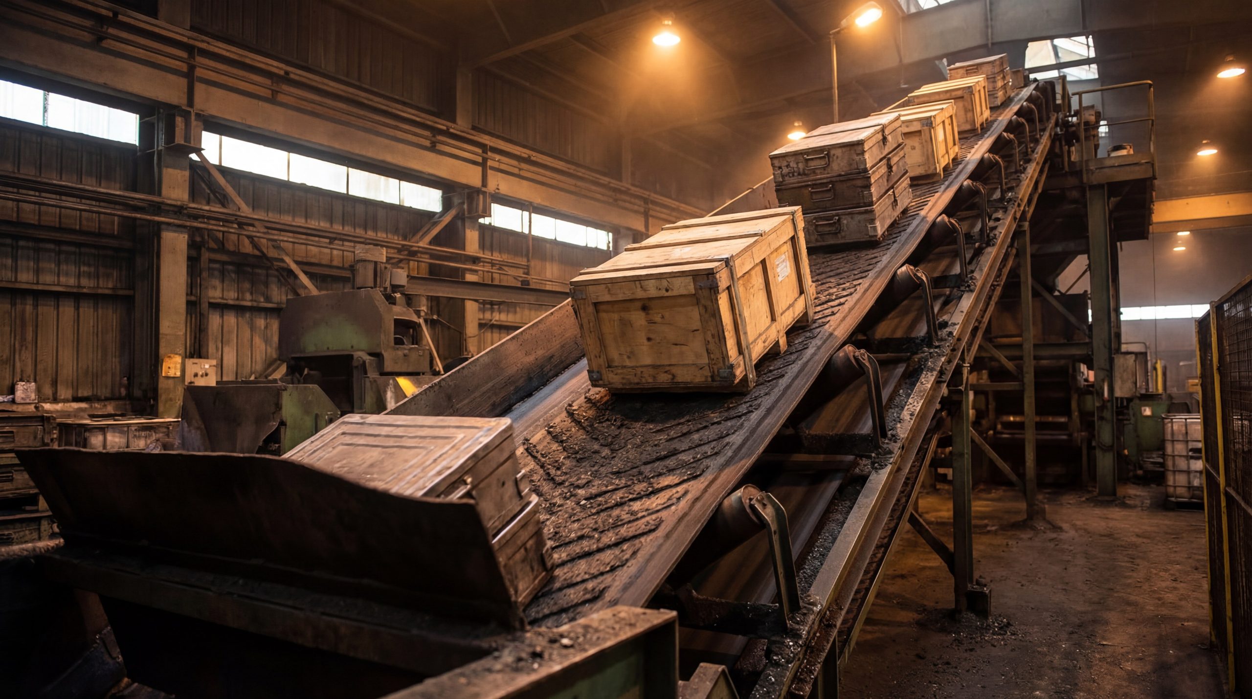 A rough top rubber conveyor belt is essential for casting because plaster molds are often heavy, wet, and incredibly smooth on the bottom. Without a textured surface, these molds act like skates on a flat belt, leading to catastrophic collisions at the base of your inclines.