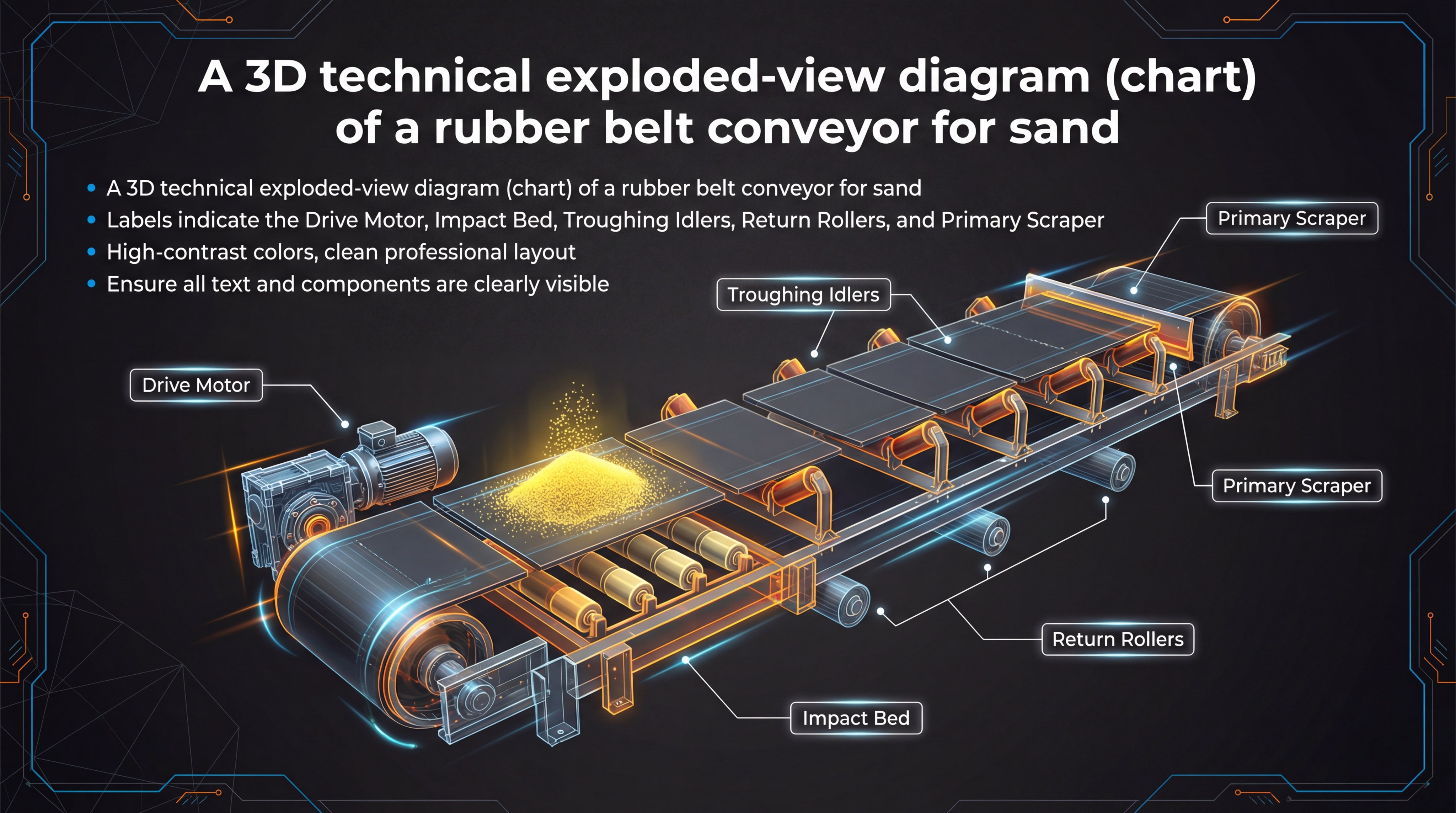 Which parts drive a rubber belt conveyor for sand efficiently?