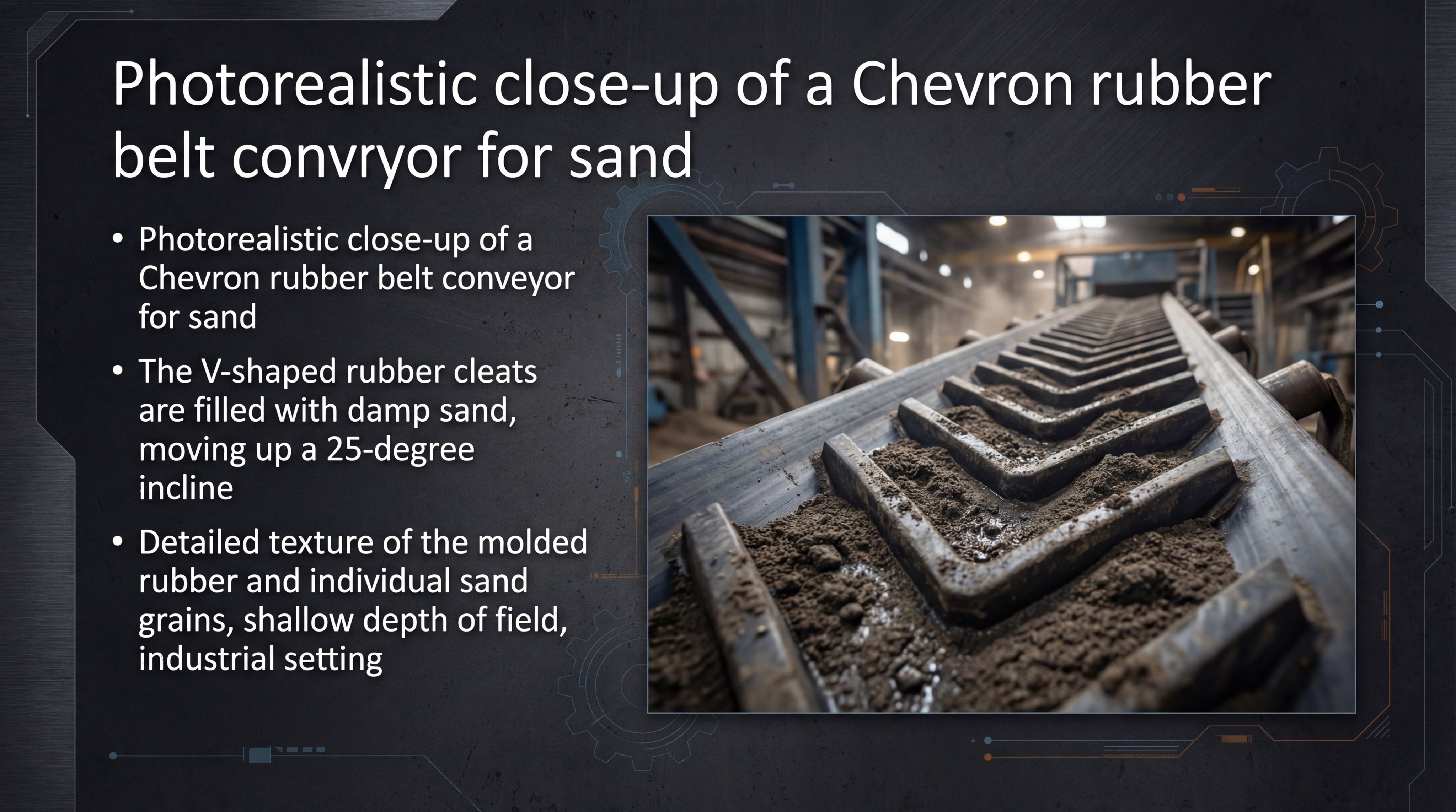 Can I use a standard belt for steep 30-degree inclines?No, a smooth belt will allow sand to slide backward at that angle. You must use a chevron or sidewall belt with molded cleats to lock the material in place and prevent spillage.