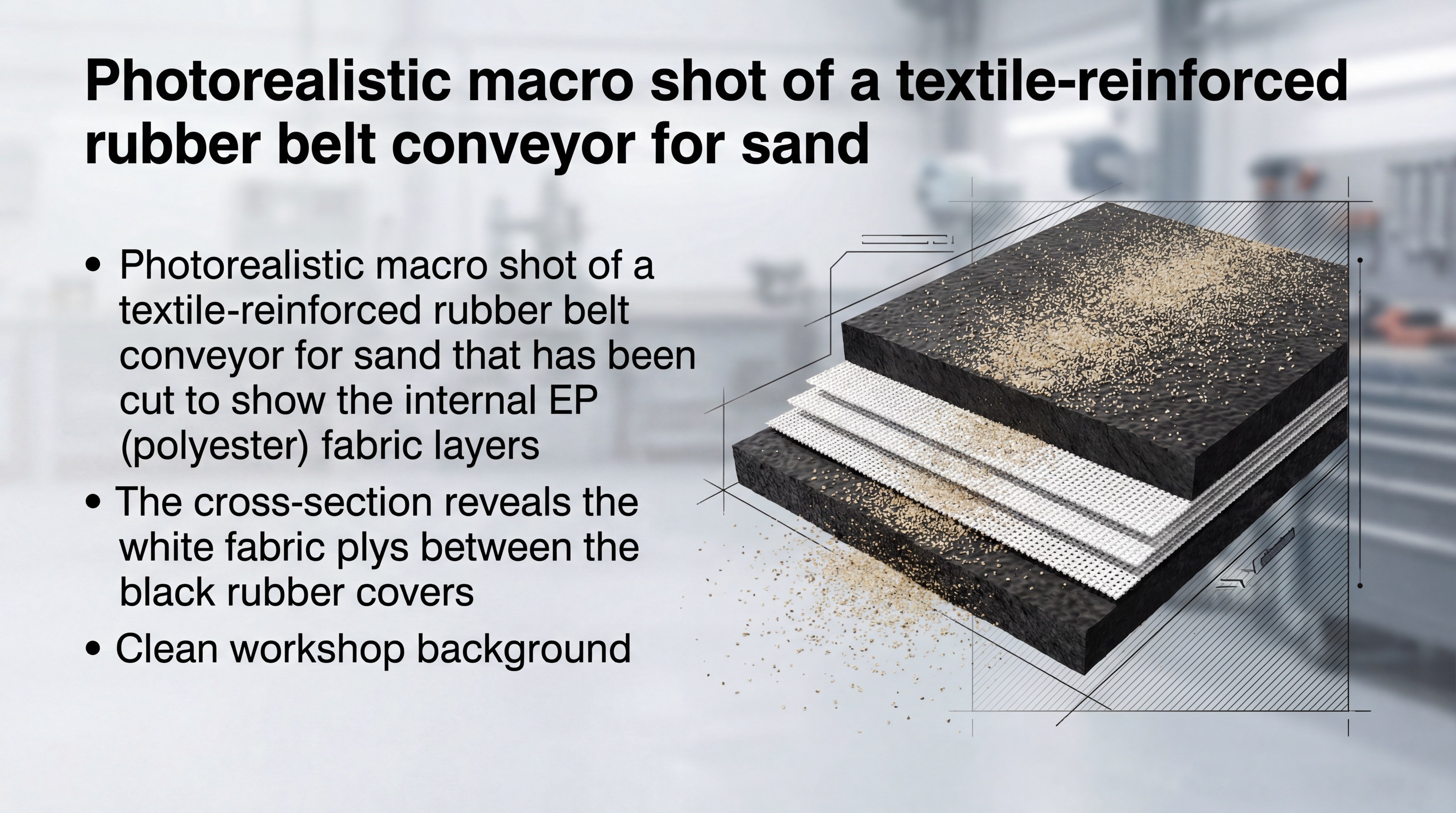 Key Takeaway: The internal fabric plys provide the strength needed to carry tons of sand without the belt sagging or snapping.