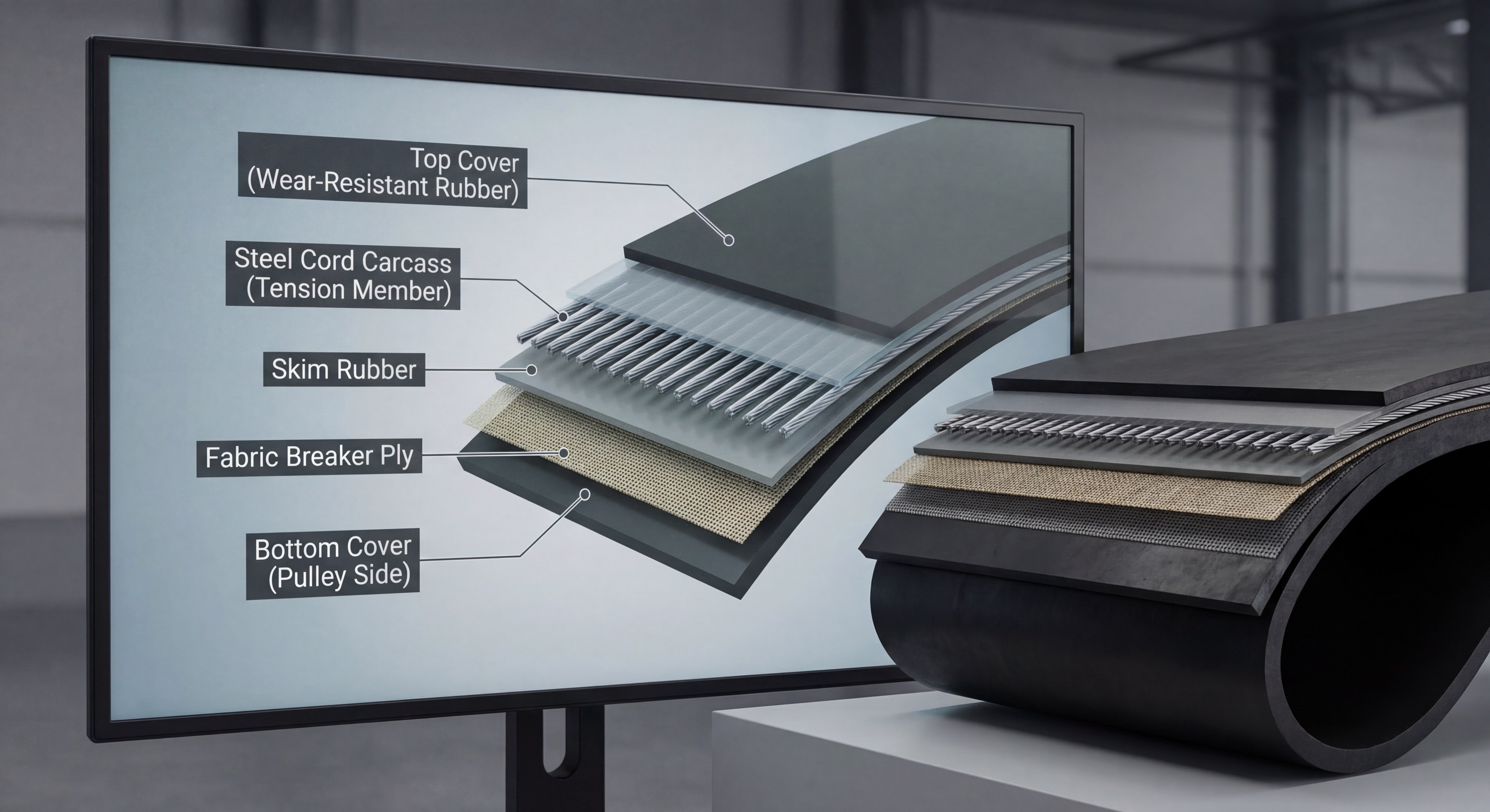 An analysis of carcass construction reveals that high-tensile fabric is essential for maintaining belt tension over long production lines.