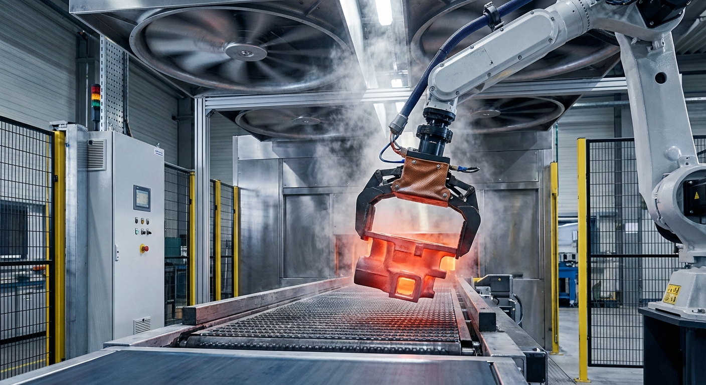 By synchronizing your conveyor with robotic arms, you can automate the delicate task of lifting hot parts from a cooling belt to a secondary cleaning station. This increases safety by removing workers from high-heat and high-noise zones.