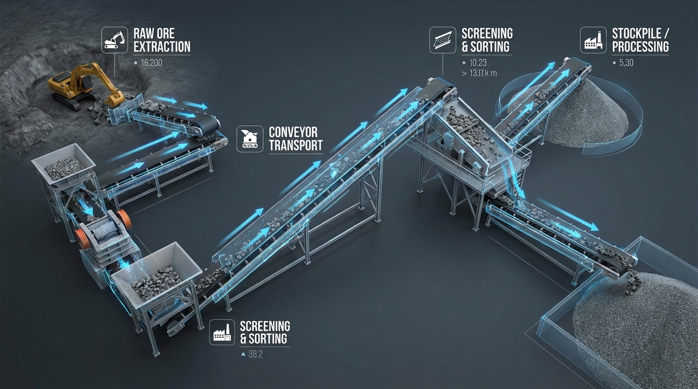 Heavy-duty mining requires a belt that acts as a stable bridge between extraction and processing.
