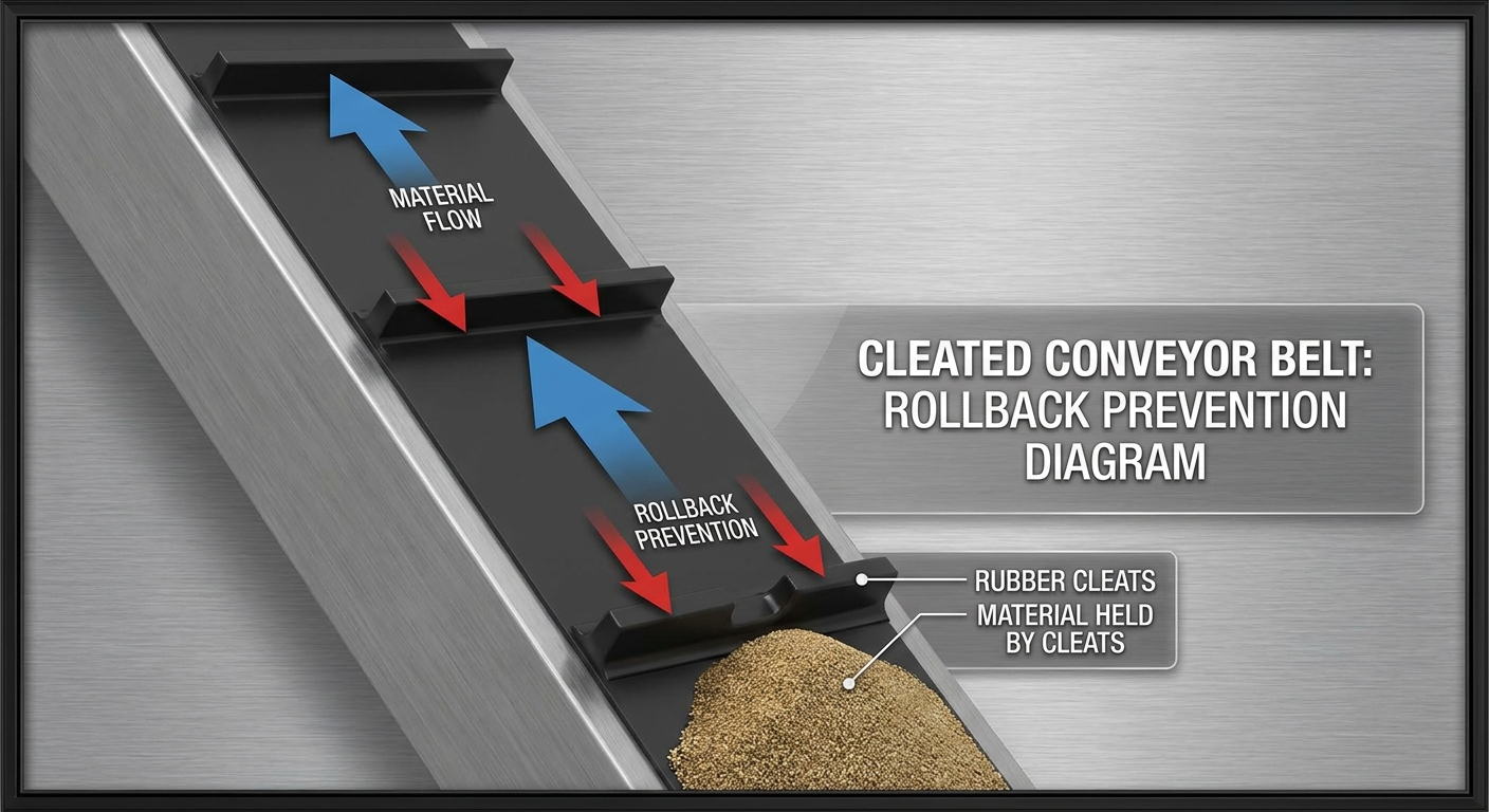 Key Takeaway: Cleated belts transform a standard transport system into a vertical material handling solution by adding mechanical barriers to overcome gravity.