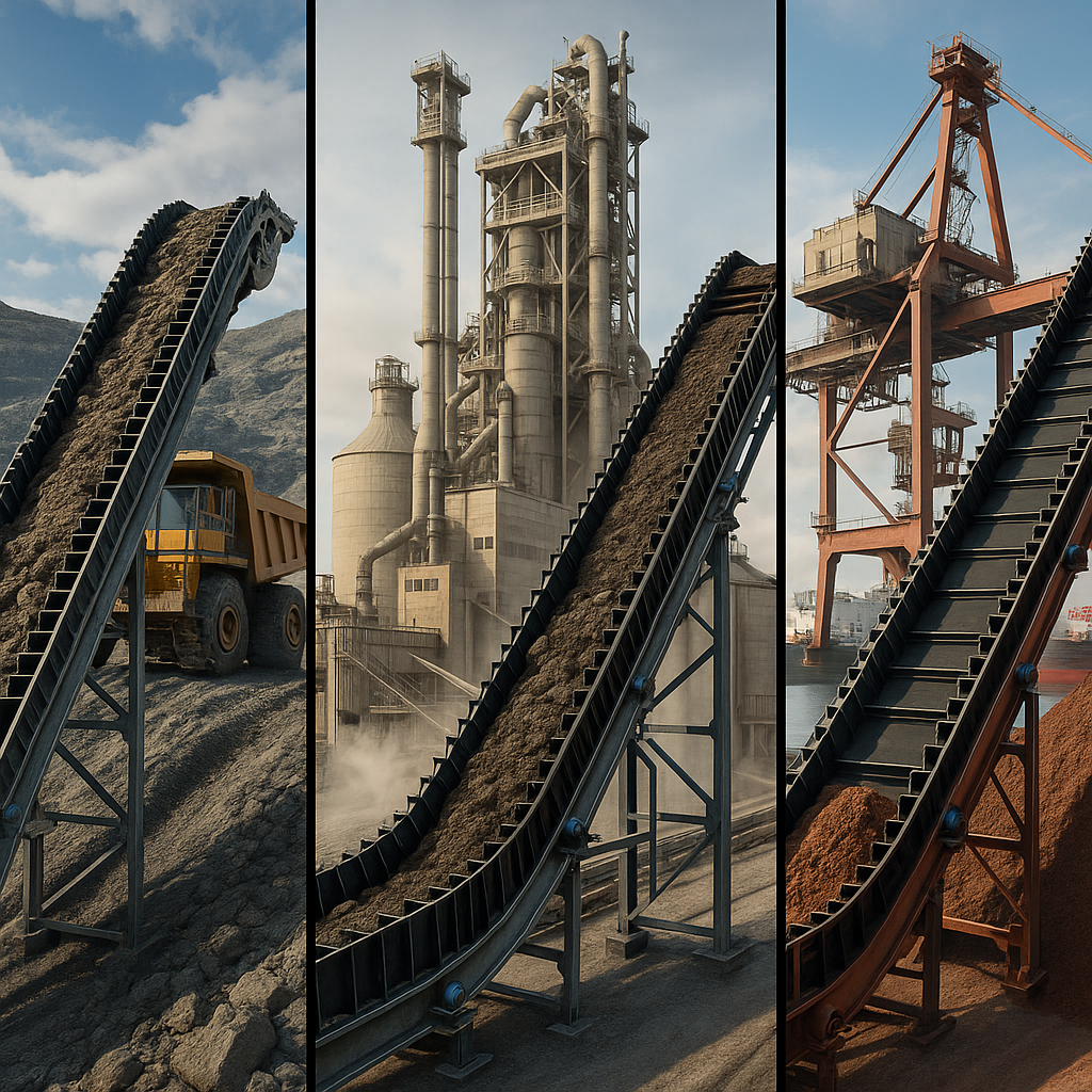 Key Takeaway: Sidewall belts are used across heavy industries like mining, cement, and power generation where steep, contained, and high-capacity conveying is needed.