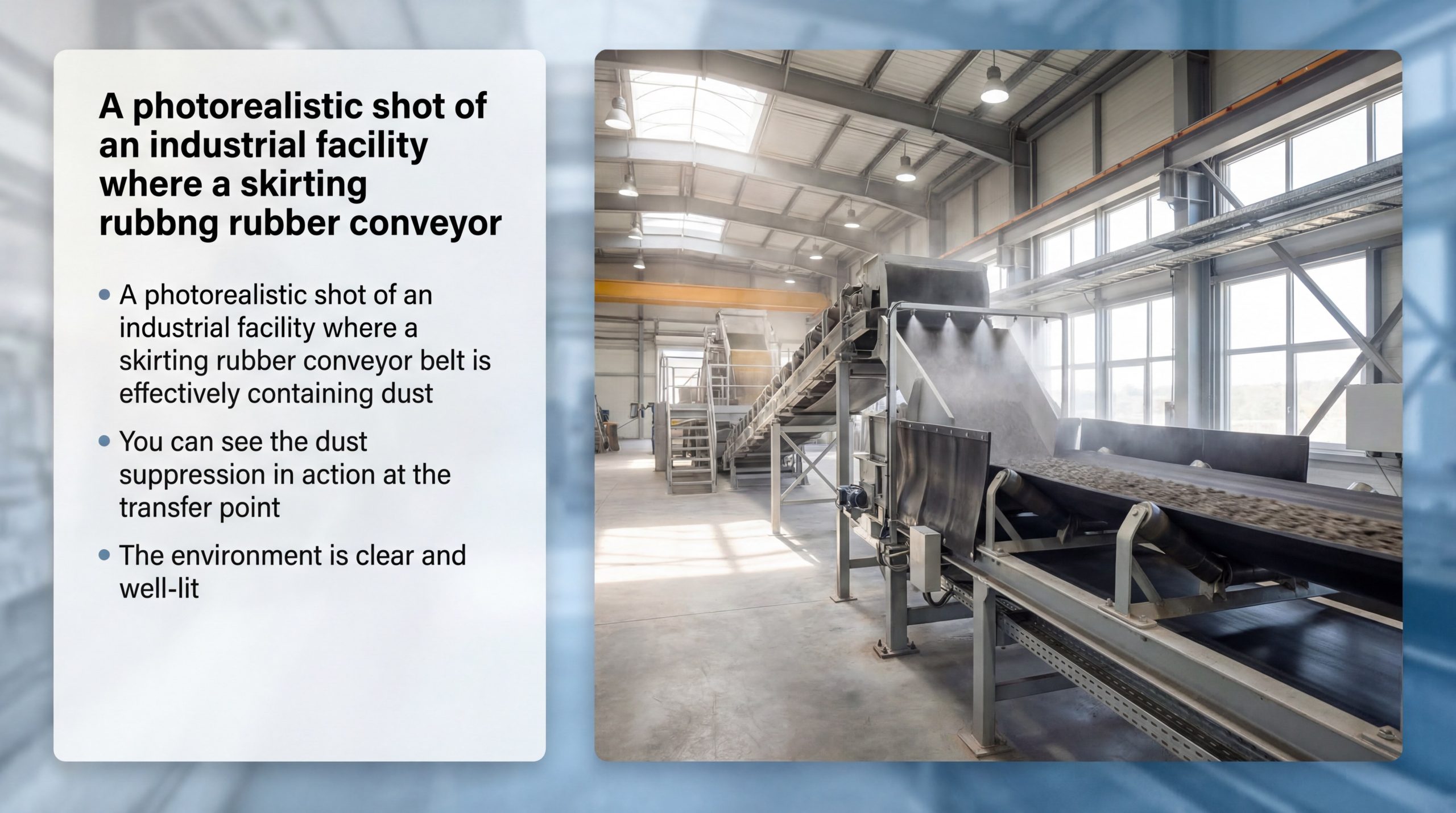 Key Takeaway: Dust isn’t just an environmental hazard; it is lost product. Skirting creates the negative pressure environment needed to keep fines on the belt.