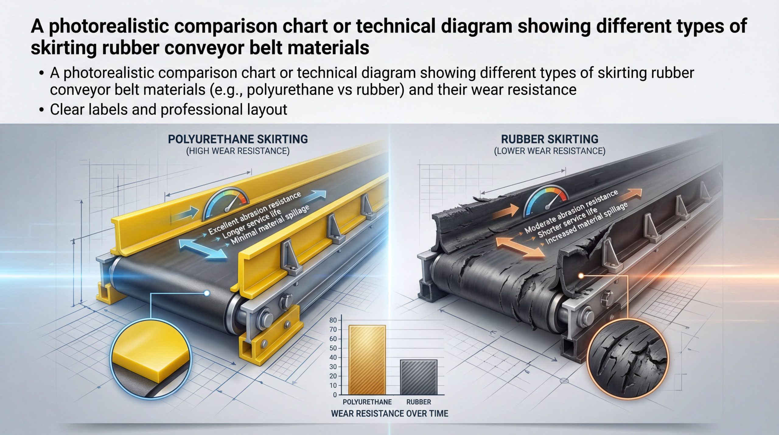 What is the best Shore A hardness for skirting?Yes, 60-70 is the gold standard for rubber skirting. This provides enough rigidity to hold back the load while remaining soft enough to flex with the belt and prevent abrasive “grooving.”