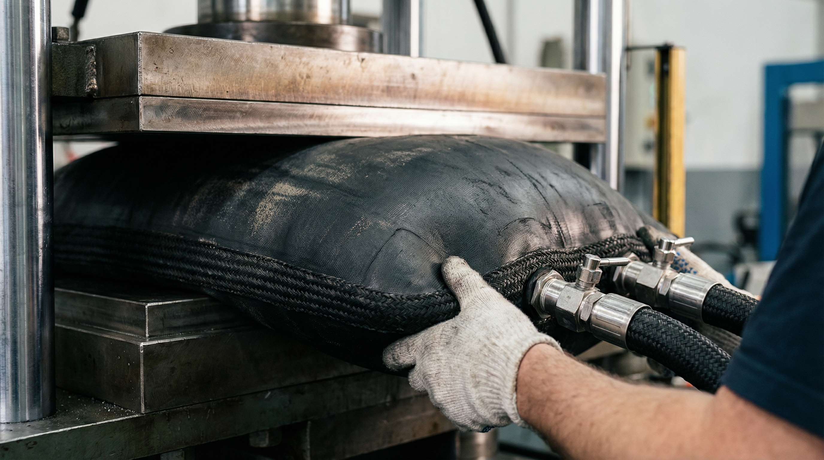Older “bolt-style” presses often create uneven pressure points that lead to internal splice failure. A water-bag uses hydraulic force to compress the rubber layers perfectly.
