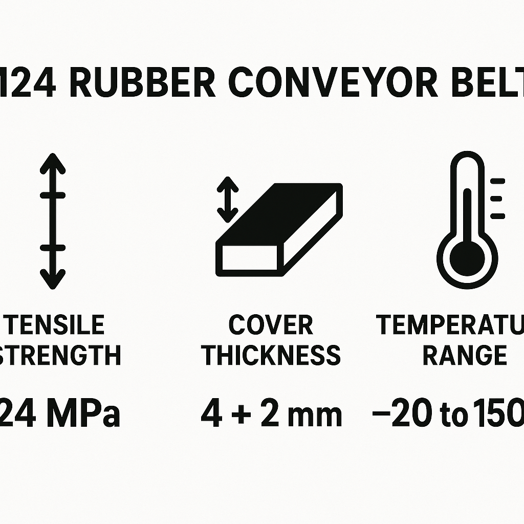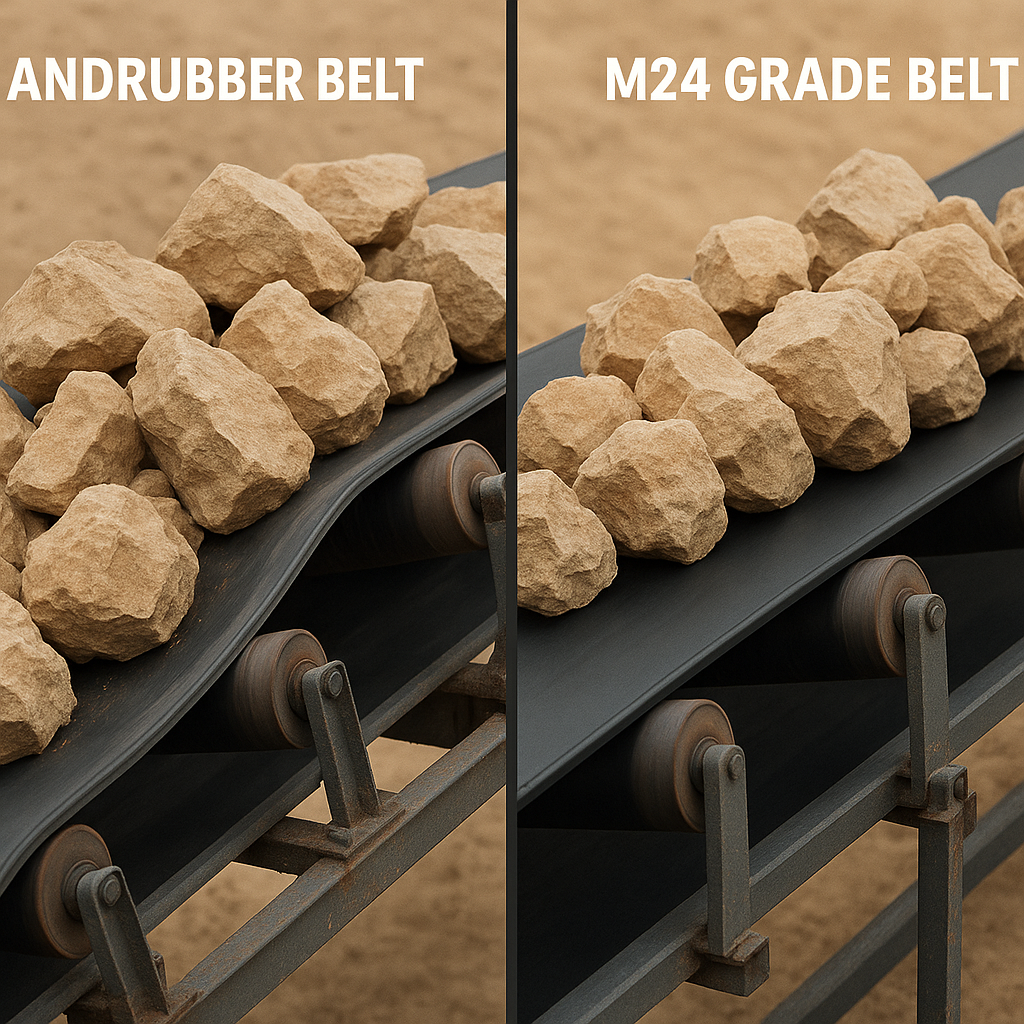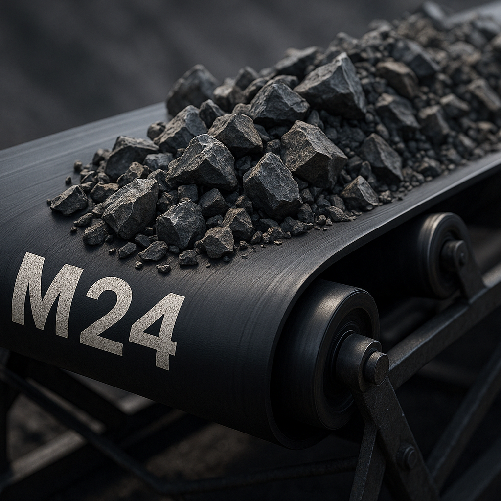 Key Takeaway: The M24 grade signifies a tough, durable belt with a minimum tensile strength of 24 MPa and excellent abrasion resistance, making it ideal for moving abrasive materials.
