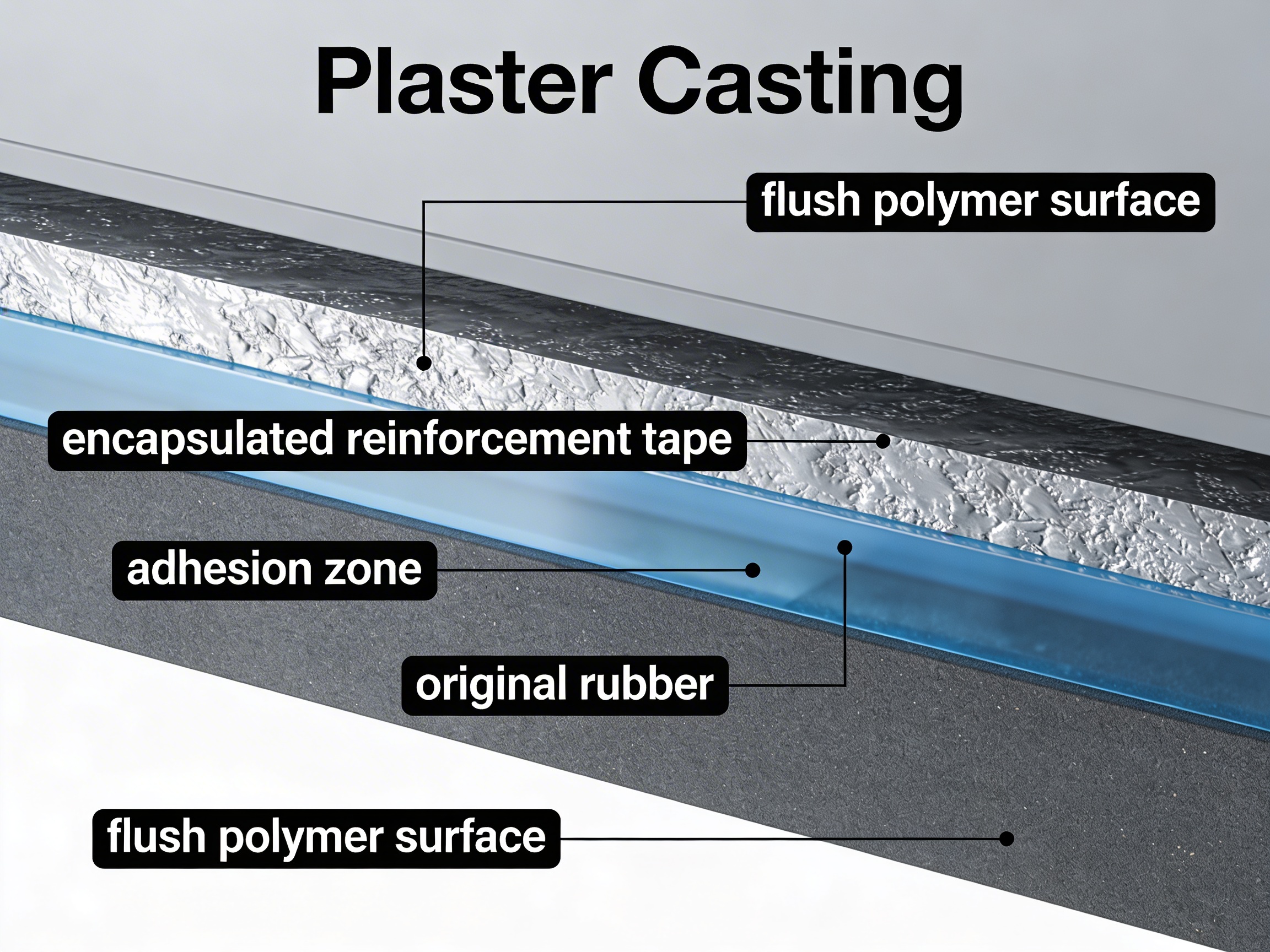 Plaster casting in a rubber conveyor belt repair sidewall refers to a cold-molding technique where liquid elastomeric polymers are poured and leveled into a prepared cavity to restore the belt’s original profile. This method mimics the precision of a molded part but is performed directly on the conveyor frame in your facility.
