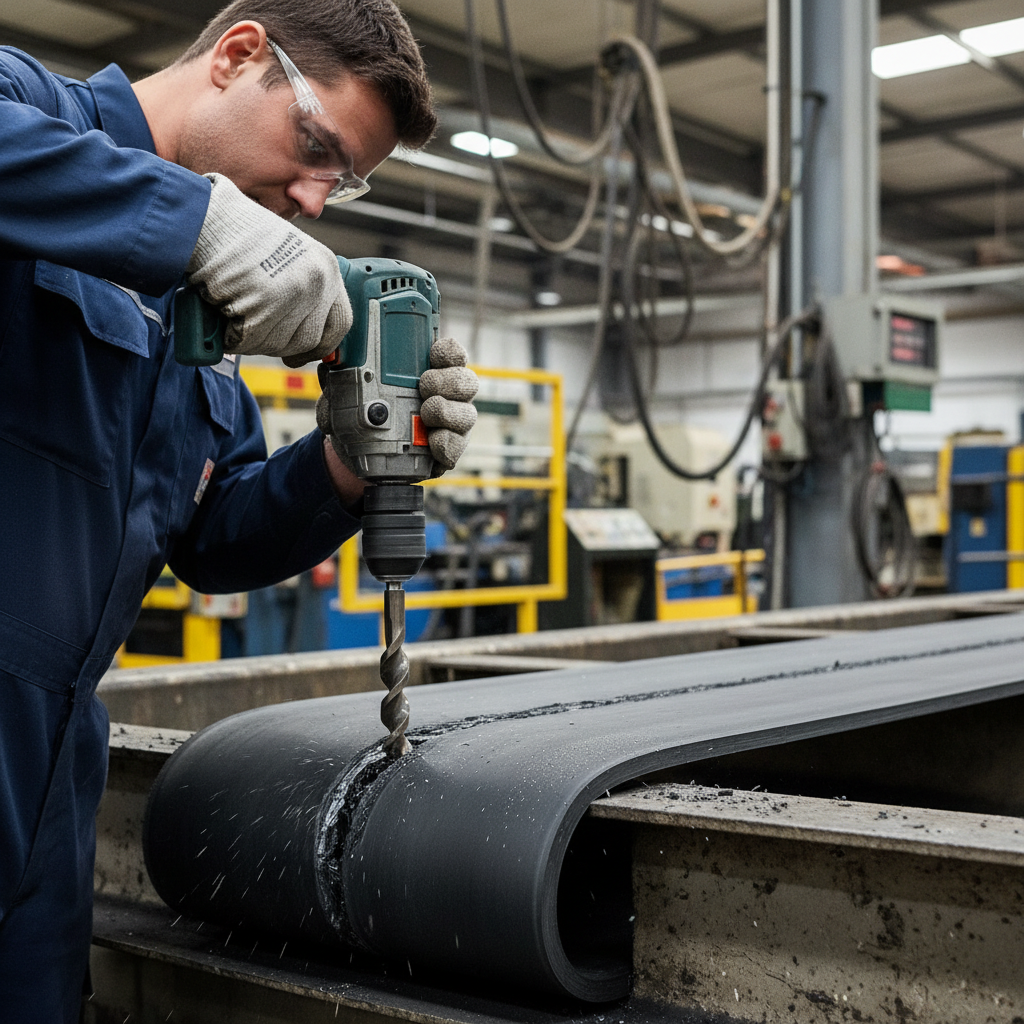 You begin a rubber conveyor belt repair sidewall by identifying the extent of the damage and drilling termination holes at the ends of any longitudinal tears. This critical step prevents the crack from propagating further under the tension of the drive pulleys.
