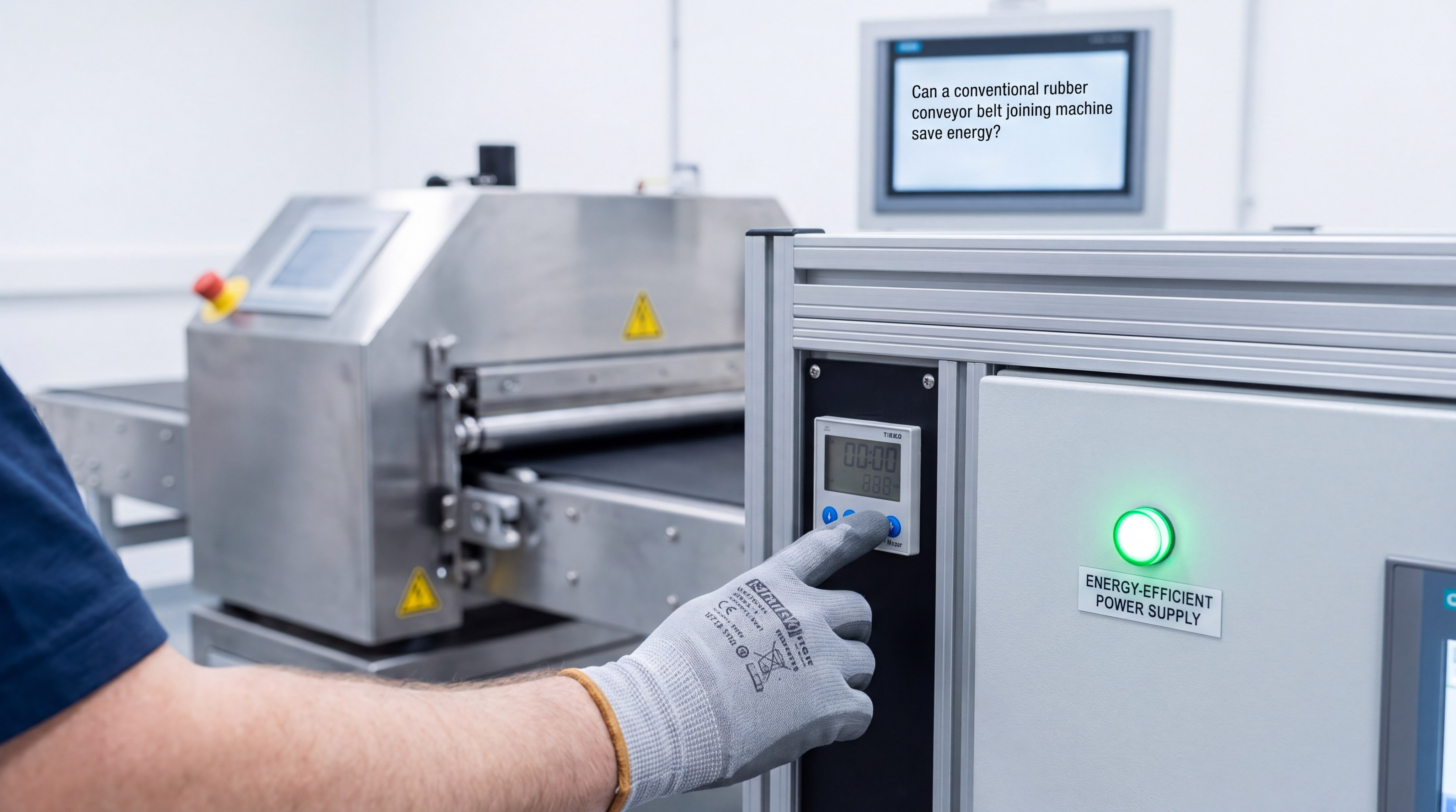 Can a conventional rubber conveyor belt joining machine save energy?