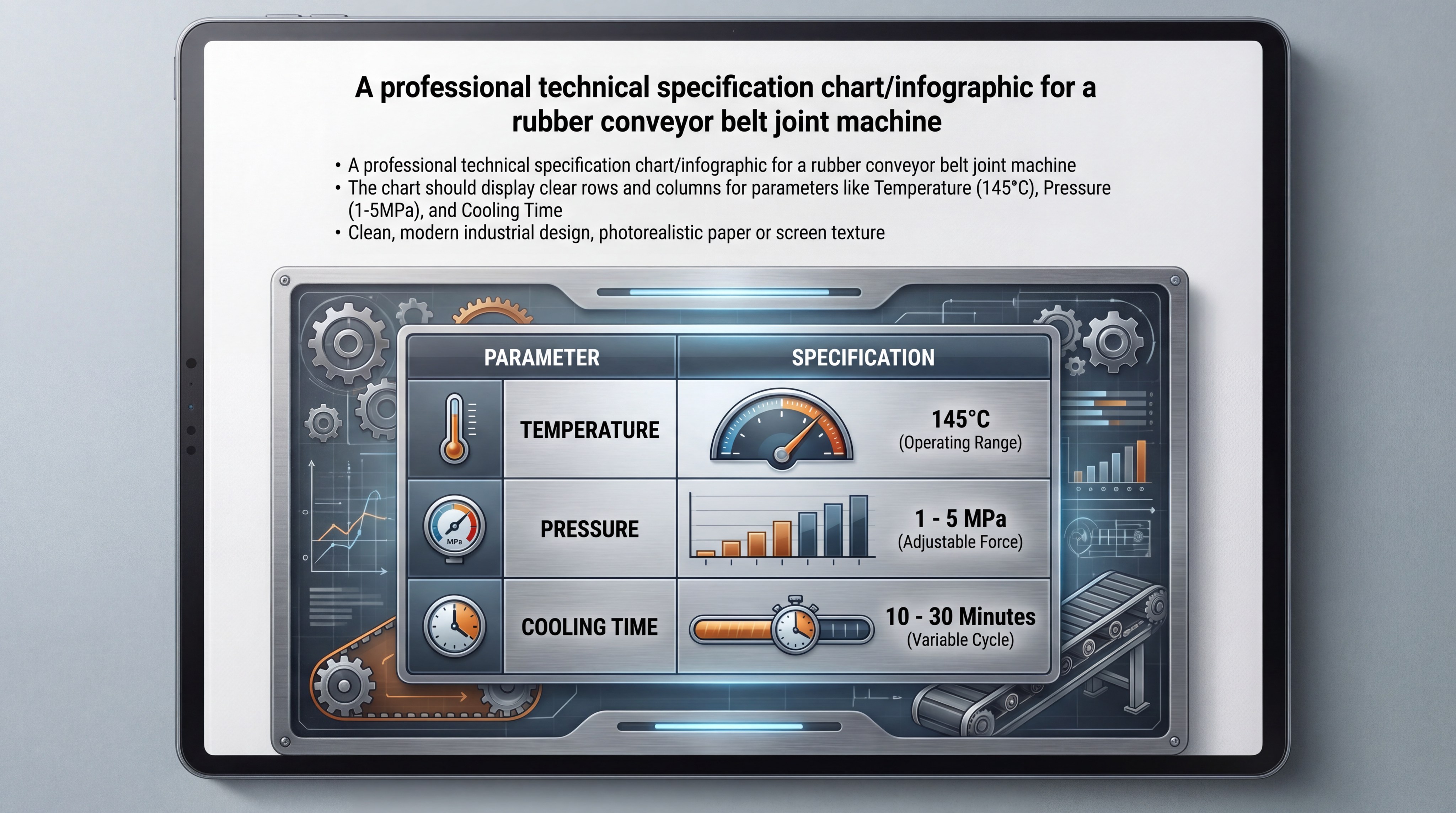 The machine must be capable of reaching an adjustable range of up to 200°C, though most rubber belts require exactly 145°C for the curing stage. Pressure must be maintained at a steady 1.5MPa to ensure the rubber flows into every fiber of the fabric plies.
