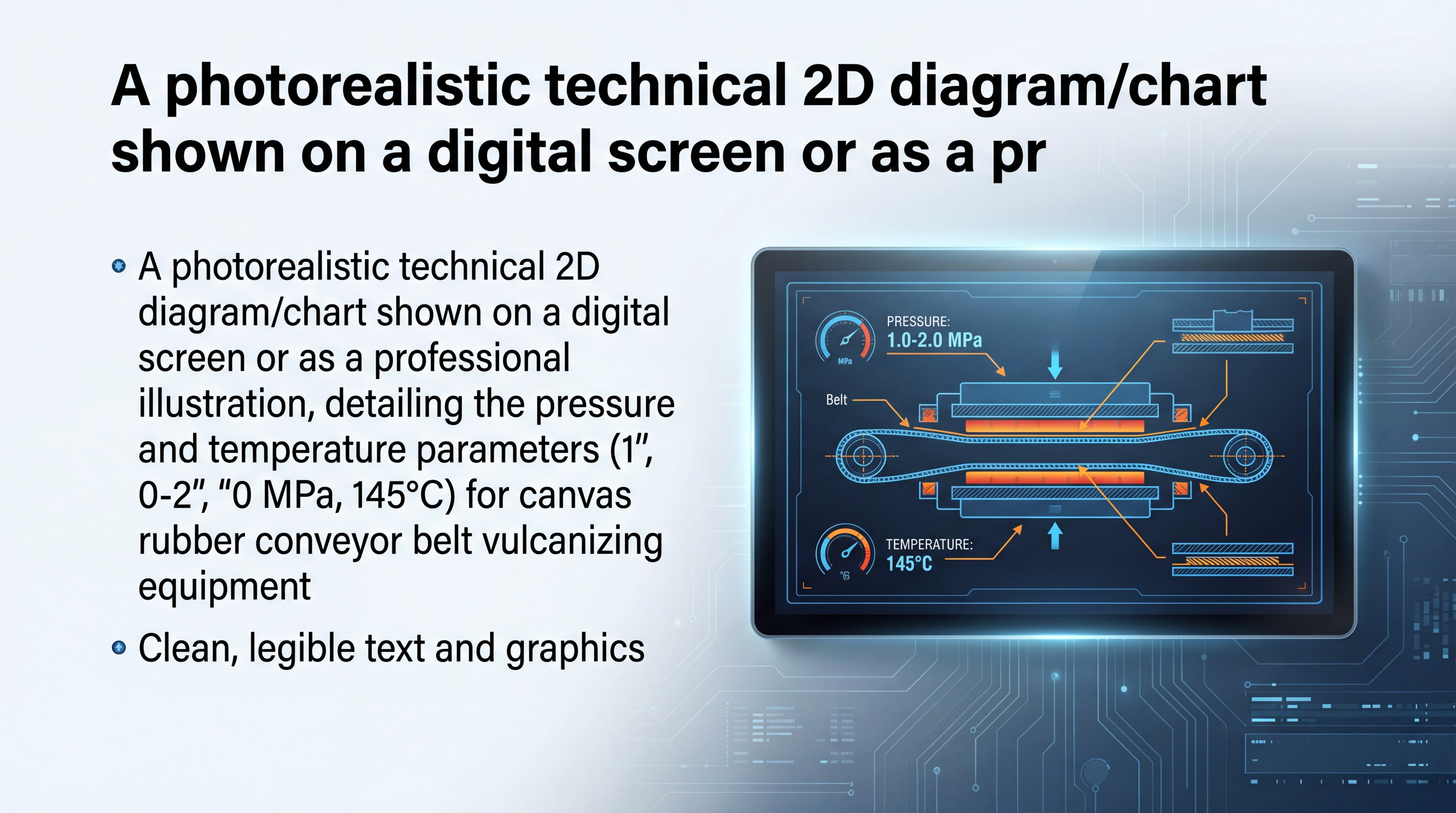 Standard operation requires a vulcanization pressure between 1.0 and 2.0 MPa and a steady temperature of exactly 145°C. For your canvas rubber conveyor belt vulcanizing equipment to perform correctly, these parameters must be maintained throughout the entire curing cycle.