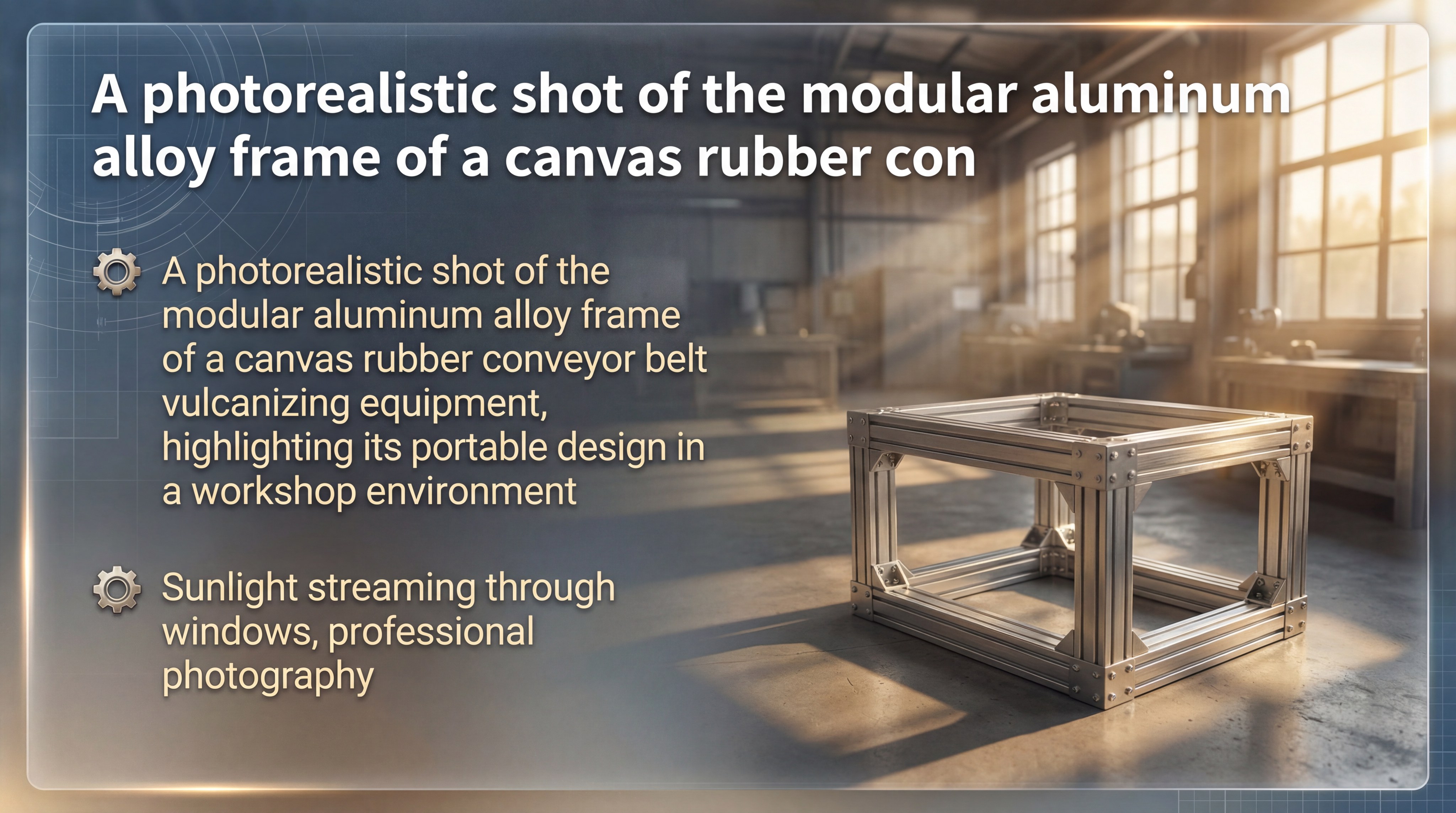 A modular aluminum alloy frame provides the perfect balance between high structural strength and lightweight portability for field technicians. This design choice in canvas rubber conveyor belt vulcanizing equipment allows two people to carry and assemble the machine on a conveyor structure without heavy lifting gear.