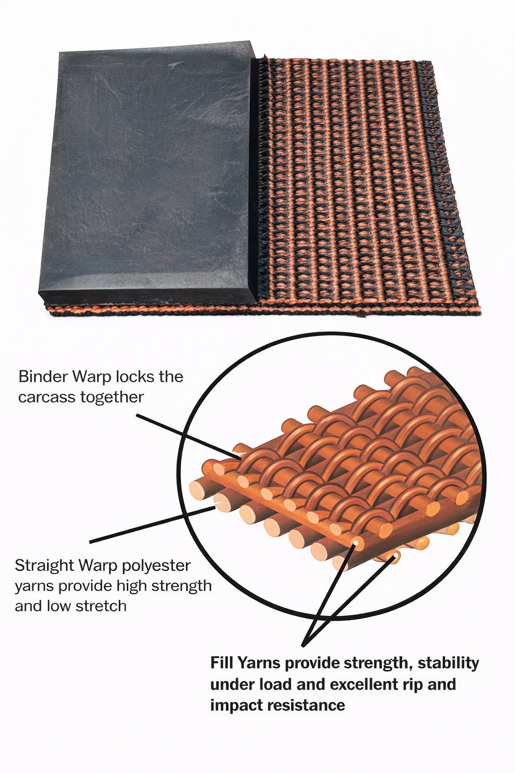 - Woven steel cords in both longitudinal and transversal directions create an integrated fabric that prevents cable separation during operation
