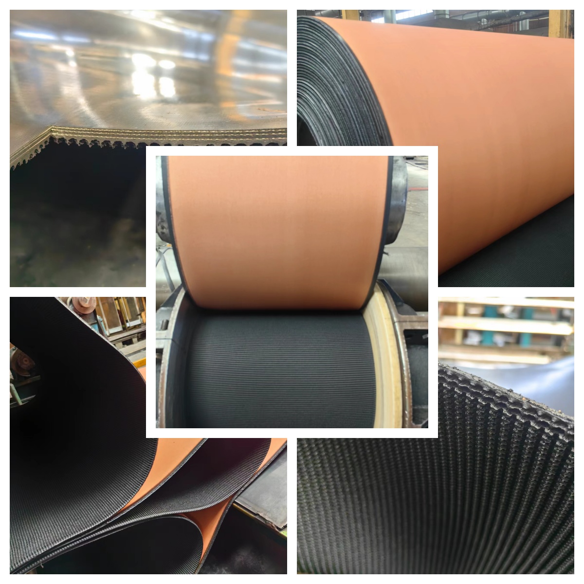 Real-time glimpse into our manufacturing operations showing various Rough Top Conveyor Belts at different production stages, demonstrating our commitment to quality and precision.
