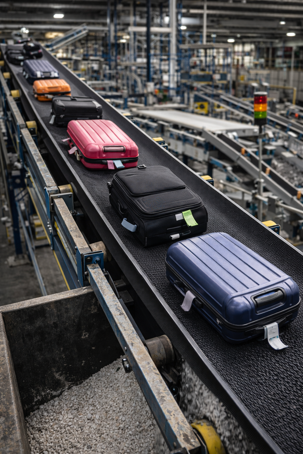 Move luggage safely on inclined sections of baggage handling systems, ensuring gentle treatment and reliable transport of passenger belongings.
