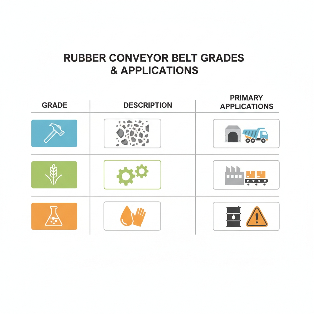 You rely on conveyor belts daily, so grasping grades starts with their core makeup. Here’s the deal: Grades classify rubber based on resistance to wear, heat, or static.