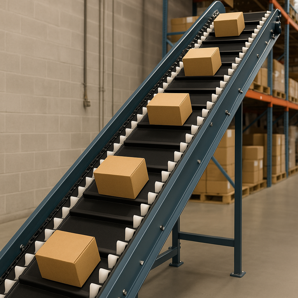 Incline and decline belts move products between different floor levels. To prevent items from slipping, they often feature a high-friction surface or cleats. This ensures your products move safely up or down.