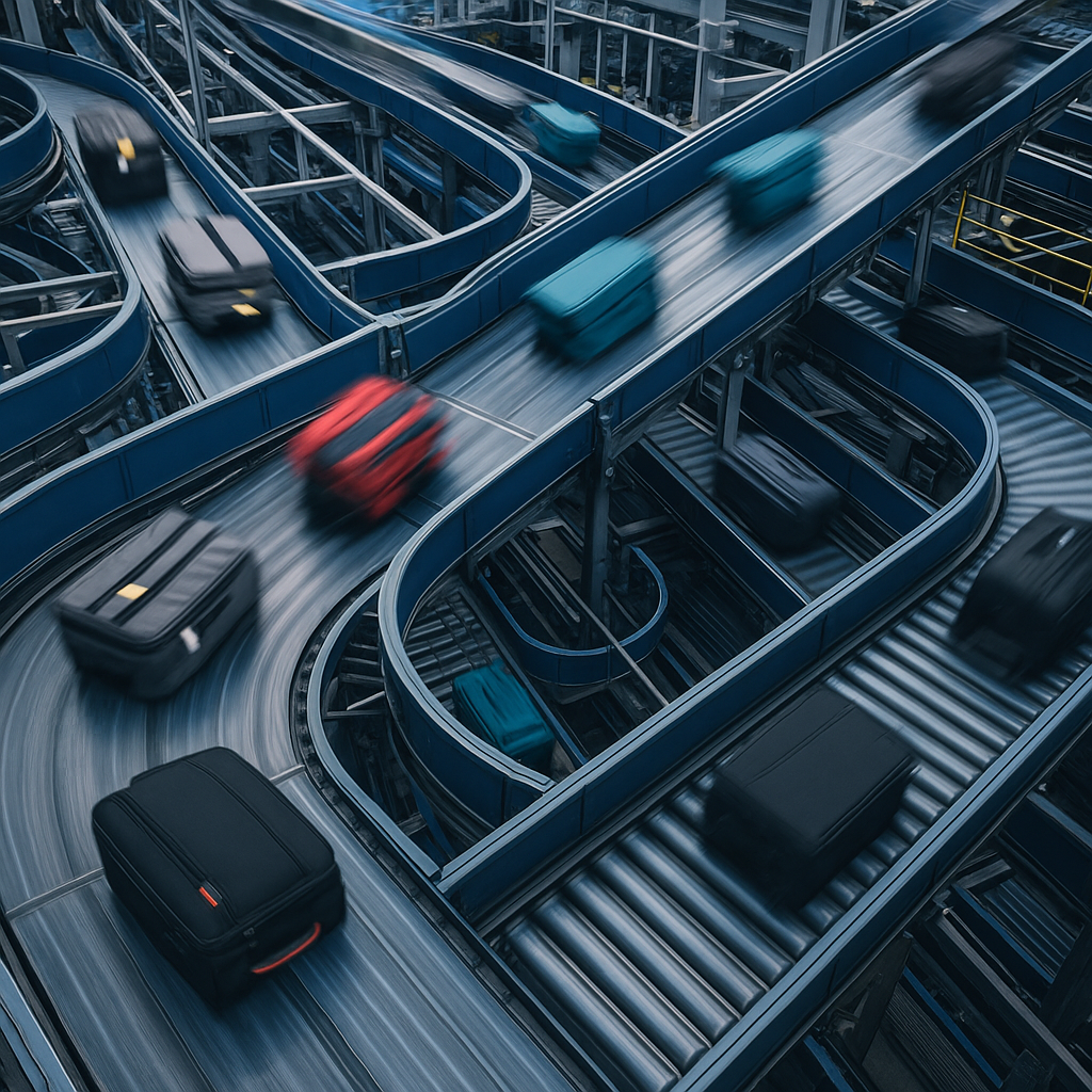 At an airport, a complex web of conveyors transports your bag from check-in, through security screening, to the correct gate for loading. This automated system handles thousands of bags per hour. It ensures your luggage makes the flight.